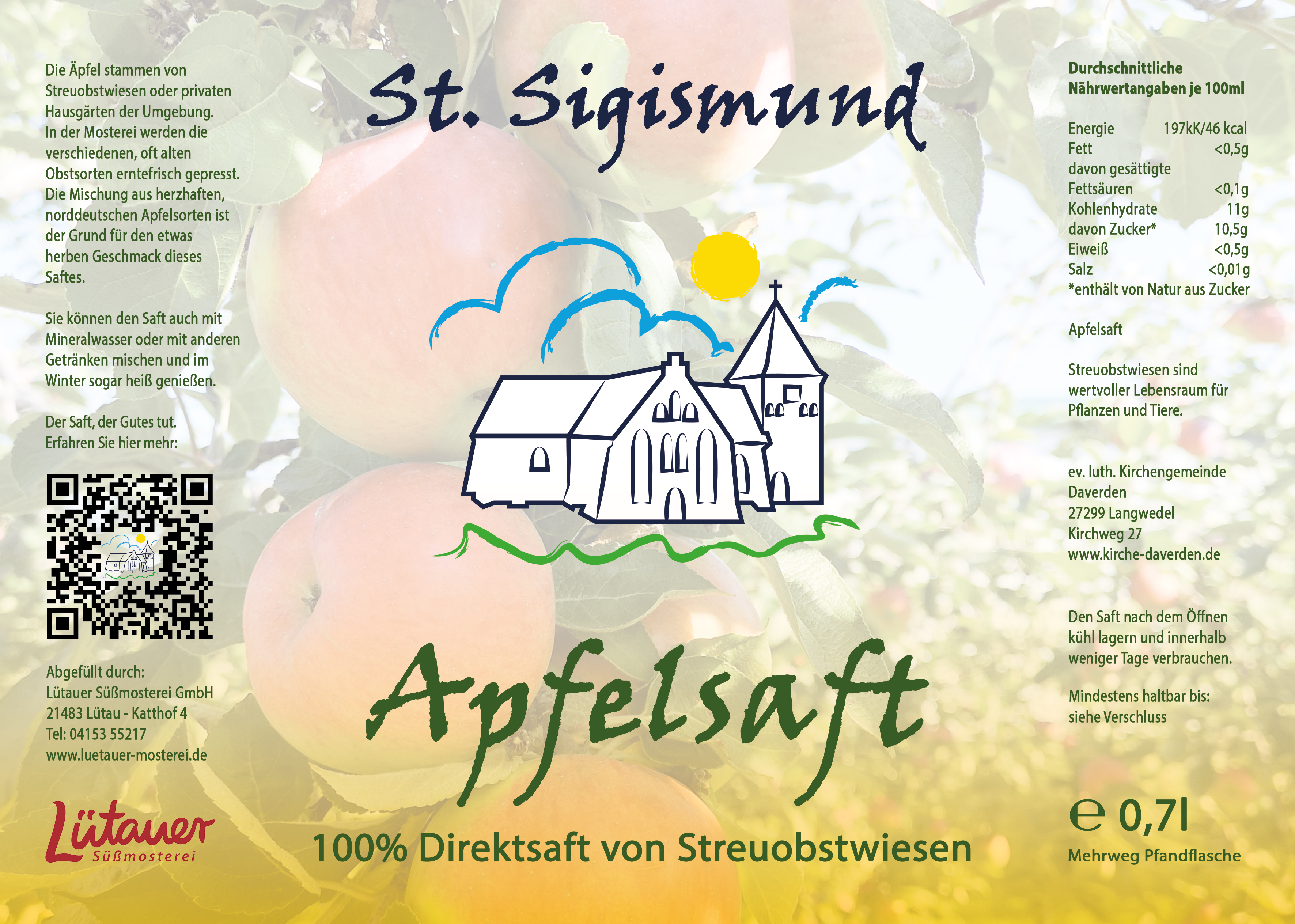 Auf Streuobstwiesen auf dem Kirchengelände und in der näheren Umgebung wurde im Herbst 2024 eine Ernteaktion gestartet. Die 360kg gesammelte Äpfel wurden zur Lütauer Mosterei gebracht.