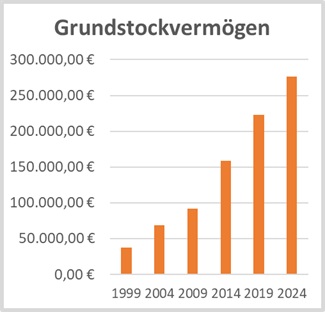 Finanziell war 2024 für die Stiftung ein erfolgreiches Jahr. Das Grundstockvermögen ist auf über 276.500 € angestiegen. Wir danken ganz herzlich allen, die dazu beigetragen haben, diesen ansehnlichen Kapitalbetrag aufzubauen. Die Entwicklung des Grundstocks in den Jahren seit Gründung der Stiftung zeigt die Grafik.